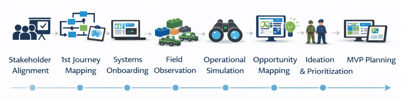 The research conducted during the discovery phase became the foundation for the overall product strategy. Through a detailed understanding of the operational workflows, the team was able to identify which existing capabilities of the Visitrans platform could be reused, define new features required to support military logistics operations, and explore opportunities for introducing automation into the marshaling process. The impact of the solution was evaluated using two key operational indicators: operation execution time and item traceability, though the exact metrics remain confidential due to security restrictions. The project later received international recognition, winning the 2023 NATO Innovation Challenge for Military Logistics and Transport, validating the real-world applicability of the solution. Beyond the technical outcomes, one of the most meaningful impacts was the shared understanding created among the soldiers involved in the project, as the research process helped different roles gain new insight into how the broader operation functioned.